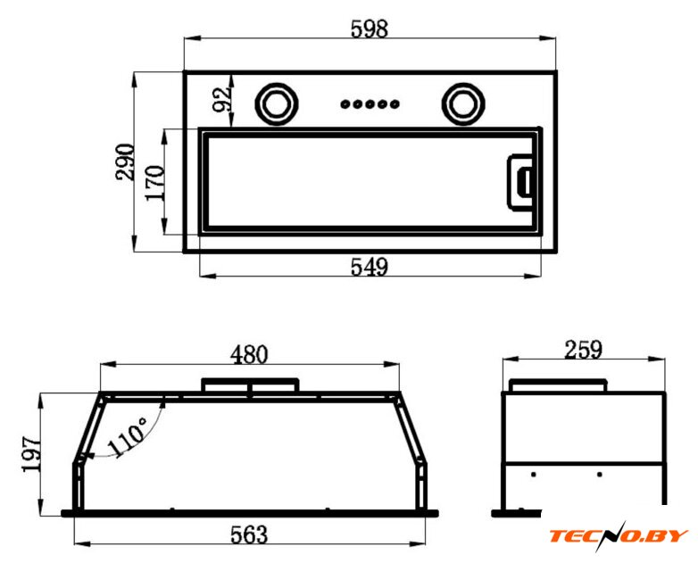 При ширине 59.8 см, глубине 29 см и высоте 19.7 см, она идеально подходит для небольших кухонь. Вес модели составляет всего 8.5 кг, что облегчает монтаж и установку. Диаметр воздуховода в 150 мм соответствует стандартным нормам, обеспечивая оптимальную работу устройства.