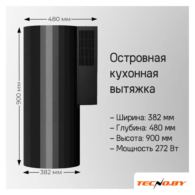 конструкция Т-образная, монтаж настенный, ширина 89.8 см, управление сенсорное, производительность вытяжки 480 м³/ч, цвет нержавеющая сталь/черный