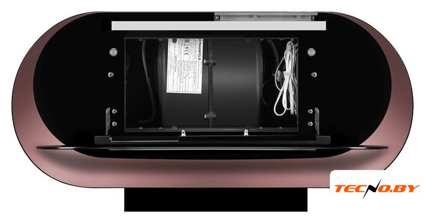 конструкция коробчатая, монтаж настенный, ширина 35 см, управление электронное/кнопочное, производительность мотора 800 м³/ч, цвет медный
