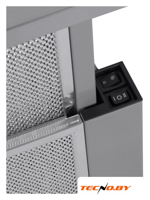 Управление вытяжкой осуществляется с помощью механических кнопок, что гарантирует надежность и простоту использования. Вы можете выбрать одну из двух доступных скоростей, чтобы оптимально настроить вытяжку под текущие условия приготовления пищи. Хотя дополнительные функции, такие как таймер и удаленное управление, отсутствуют, простота конструкции позволяет избежать сложностей в использовании.