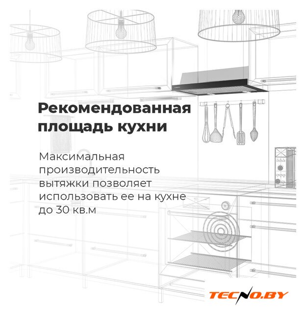 конструкция плоская, монтаж настенный, управление механическое/кнопочное, производительность мотора 320 м³/ч, ширина 60 см