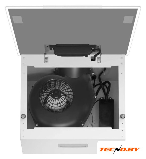 Управление вытяжкой осуществляется посредством удобных механических кнопок. Пользователь может выбирать из трех доступных скоростей работы вентиляции. Несмотря на отсутствие дополнительных функций, таких как таймер автоотключения или индикатор загрязнения фильтров, данная модель проста и интуитивно понятна в использовании.