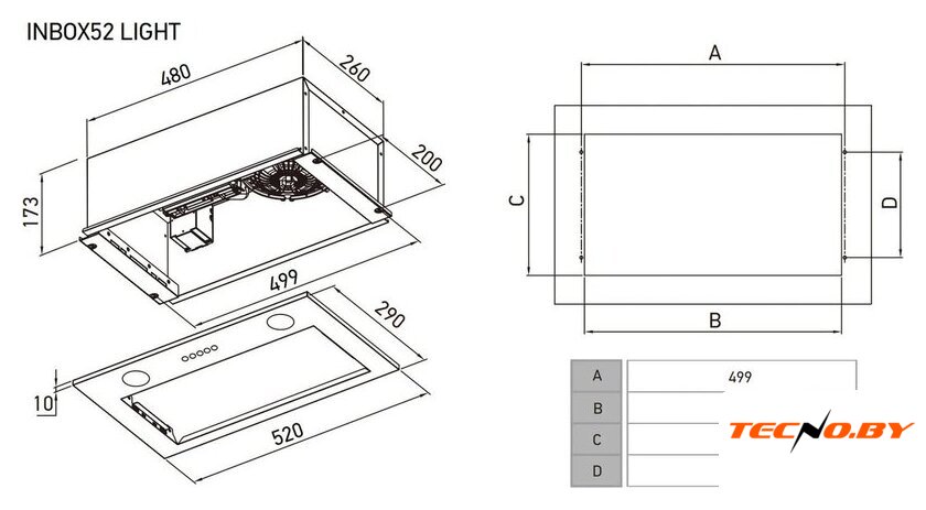 С габаритами 52 см в ширину, 29 см в глубину и высотой 17.3 см, а также диаметром воздуховода 120 мм, это устройство весит всего 3.8 кг, что облегчает его монтаж в кухонный модуль.