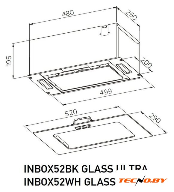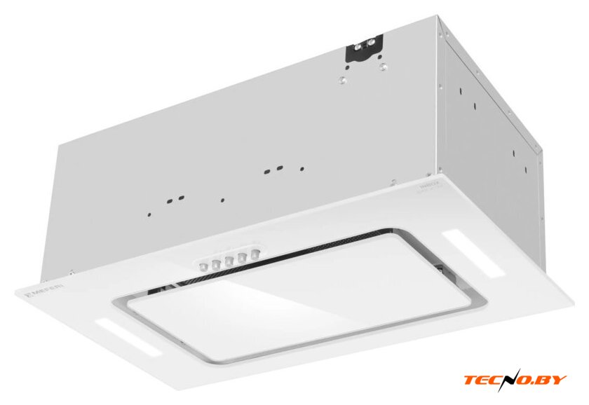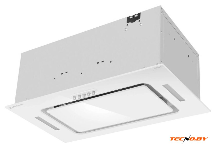 конструкция скрытая, монтаж для встраивания, ширина 52 см, управление электронное/кнопочное, производительность мотора 800 м³/ч, цвет черный