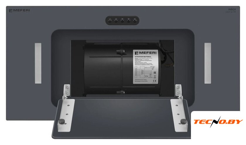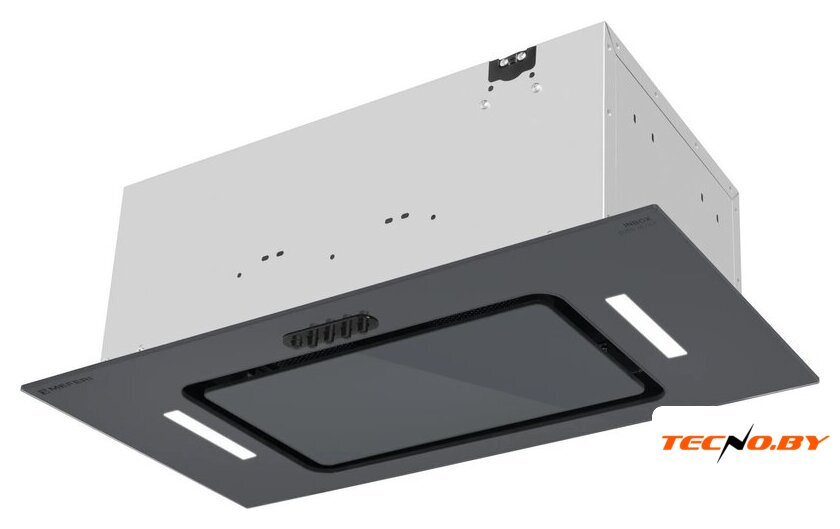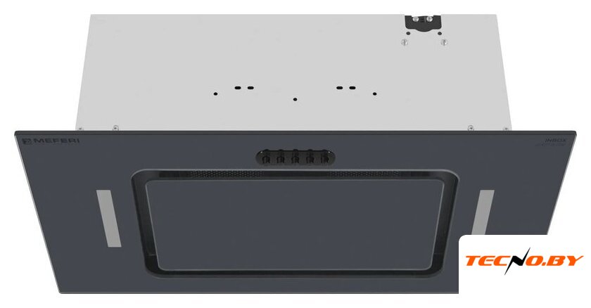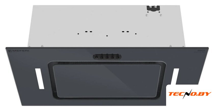 конструкция скрытая, монтаж для встраивания, ширина 59.8 см, управление механическое/кнопочное, производительность мотора 850 м³/ч, цвет черный