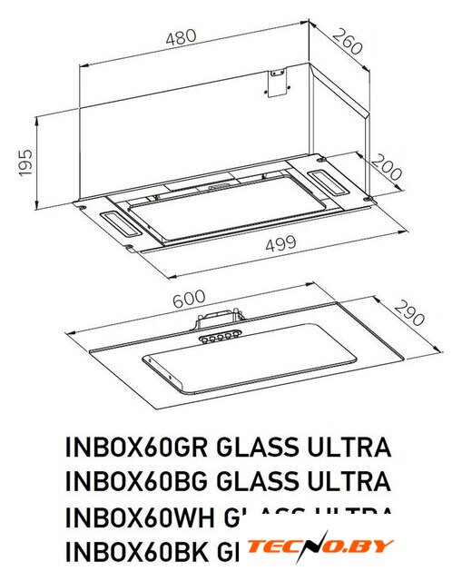 конструкция скрытая, монтаж для встраивания, ширина 60 см, управление механическое/кнопочное, производительность мотора 1100 м³/ч, цвет белый