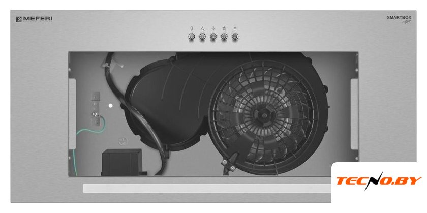 Meferi SMARTBOX60IX Light нацелена на выполнение основного предназначения без излишеств. Здесь нет сенсоров, индикаторов загрязнения или функций ионизации. Однако базовые задачи очищения воздуха вытяжка выполняет превосходно благодаря качественному мотору.
