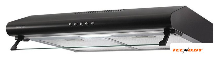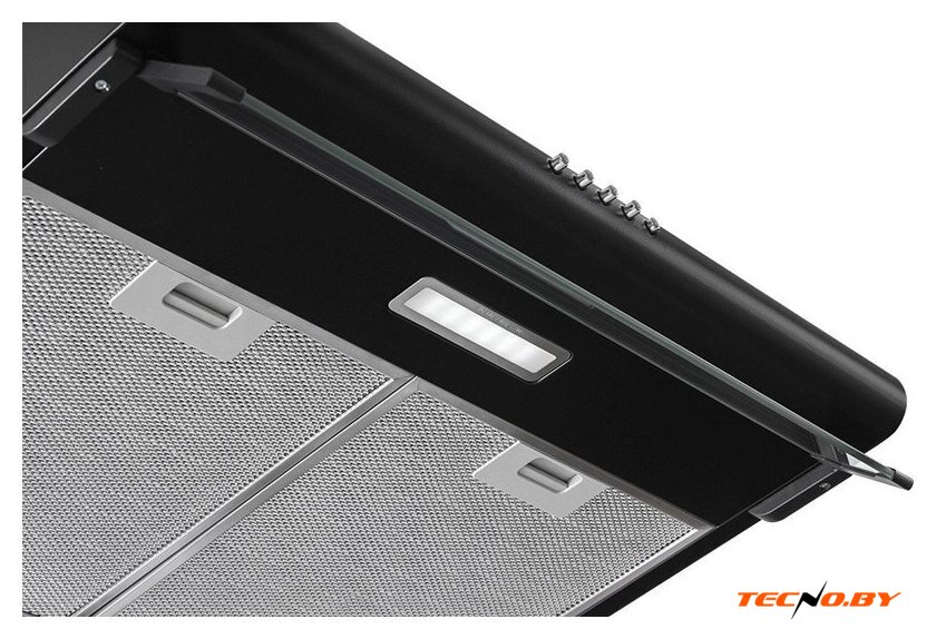 конструкция телескопическая, монтаж для встраивания, ширина 49.7 см, управление механическое/кнопочное, производительность мотора 450 м³/ч, цвет черный