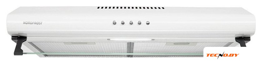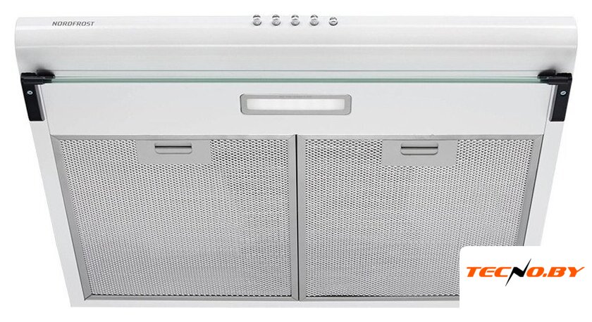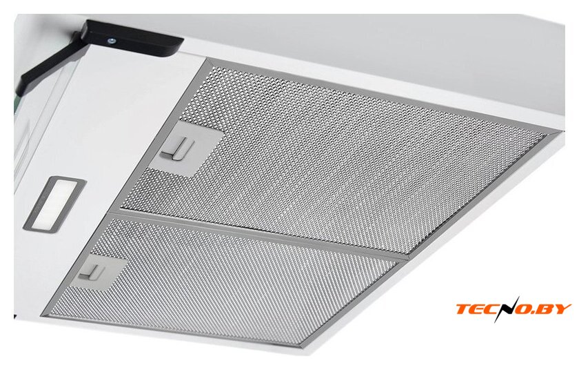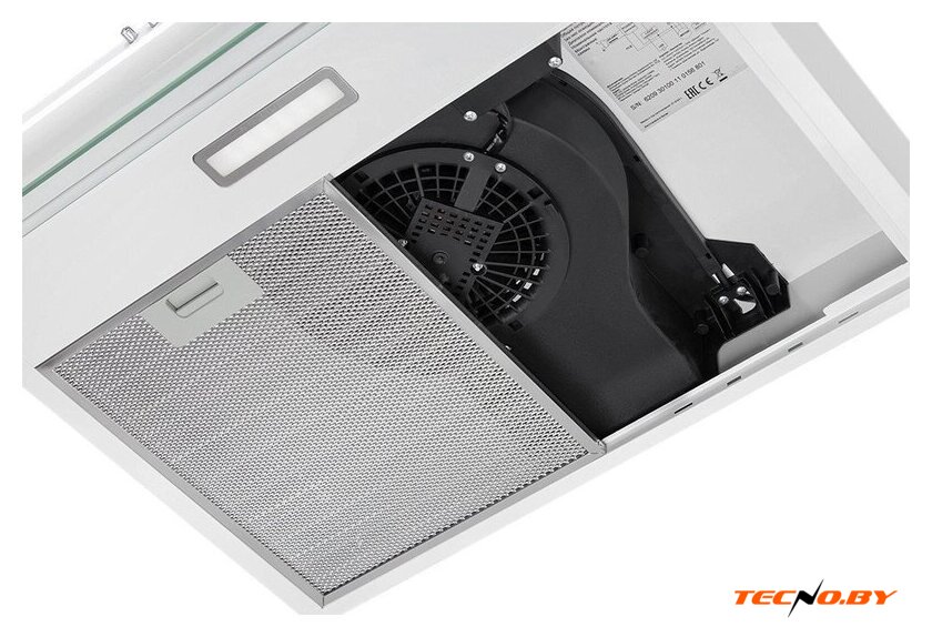 конструкция скрытая, монтаж для встраивания, ширина 59.8 см, управление механическое/кнопочное, производительность мотора 720 м³/ч, цвет белый