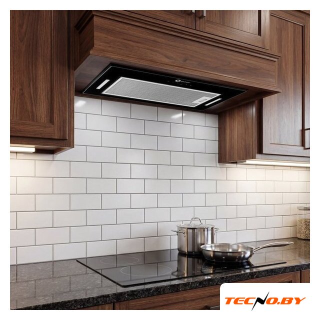 конструкция скрытая, монтаж для встраивания, ширина 59.8 см, управление сенсорное, производительность мотора 1300 м³/ч, цвет черный