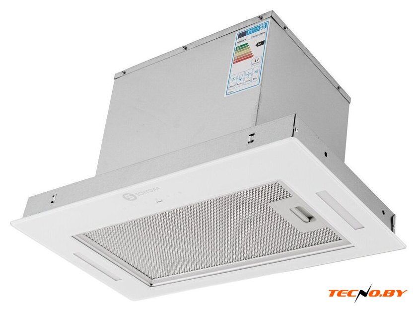 конструкция скрытая, монтаж для встраивания, ширина 60 см, управление механическое/кнопочное, производительность мотора 1060 м³/ч, цвет белый