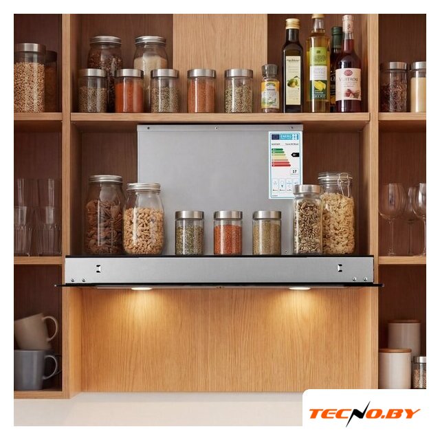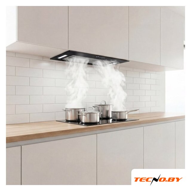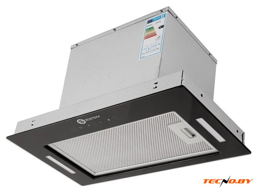 конструкция скрытая, монтаж для встраивания, ширина 59.7 см, управление сенсорное, производительность мотора 700 м³/ч, цвет черный