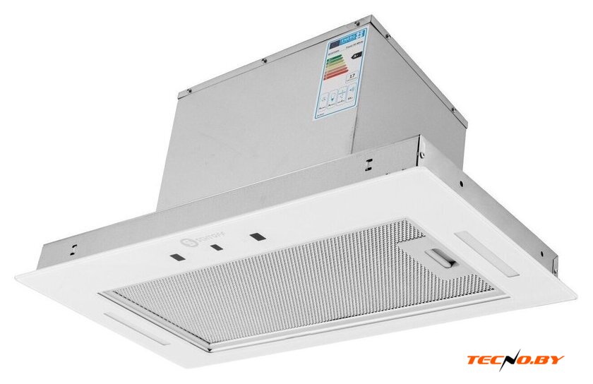 конструкция скрытая, монтаж для встраивания, ширина 49.8 см, управление сенсорное/жестами, производительность мотора 1300 м³/ч, цвет белый