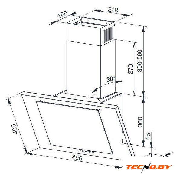 конструкция телескопическая, монтаж для встраивания, управление механическое/кнопочное, производительность мотора 650 м³/ч, ширина 49.8 см