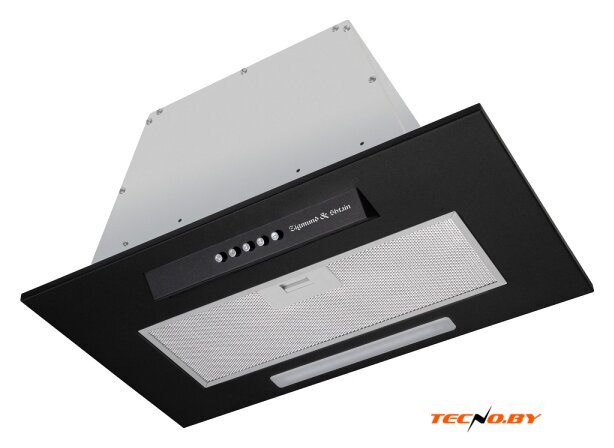 конструкция скрытая, монтаж для встраивания, ширина 52 см, управление механическое/кнопочное, производительность мотора 850 м³/ч, цвет черный