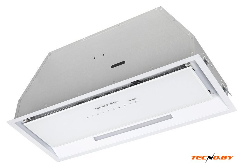 конструкция скрытая, монтаж для встраивания, ширина 53 см, управление электронное/кнопочное/жестами/дистанционное, производительность мотора 1250 м³/ч, цвет белый
