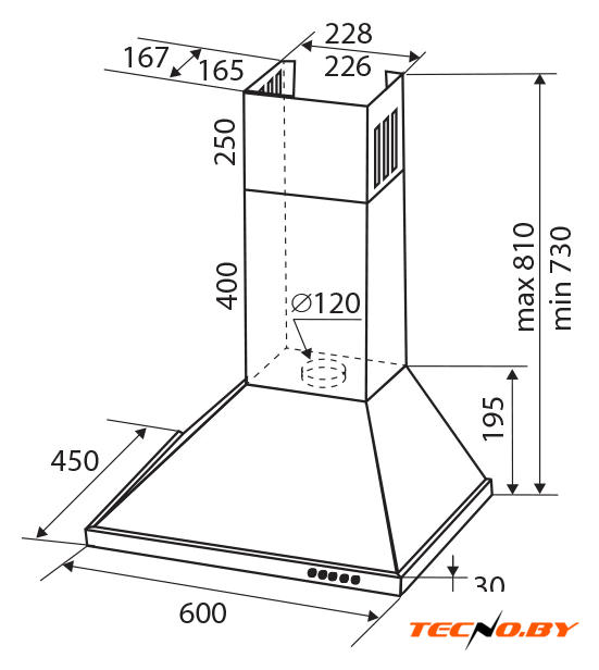 конструкция скрытая, монтаж для встраивания, управление механическое/слайдерное, производительность мотора 1050 м³/ч, ширина 60 см