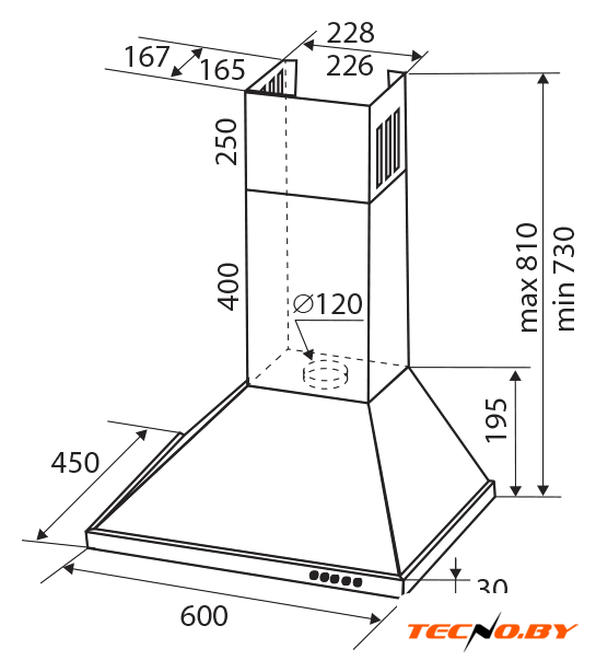конструкция скрытая, монтаж для встраивания, управление механическое/слайдерное, производительность мотора 1050 м³/ч, ширина 60 см