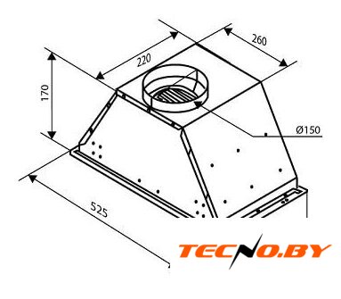 Вытяжка оснащена двумя светодиодными лампами мощностью 5 Вт каждая, создающими комфортное освещение рабочей поверхности. Ширина вытяжки составляет 52.8 см, глубина — 28 см, а высота — 27.8 см, что делает ее компактной и удобной для установки в большинство кухонных гарнитуров. Диаметр воздуховода варьируется от 120 мм до 150 мм, что позволяет подобрать подходящую конфигурацию для установки.