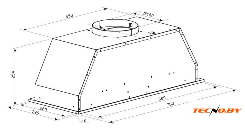 конструкция скрытая, монтаж для встраивания, ширина 70 см, управление механическое/кнопочное, производительность мотора 1010 м³/ч, цвет белый