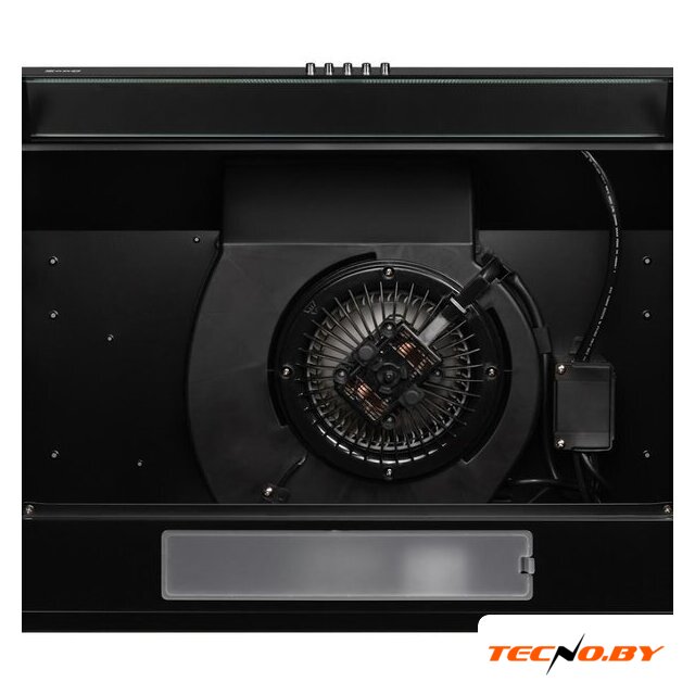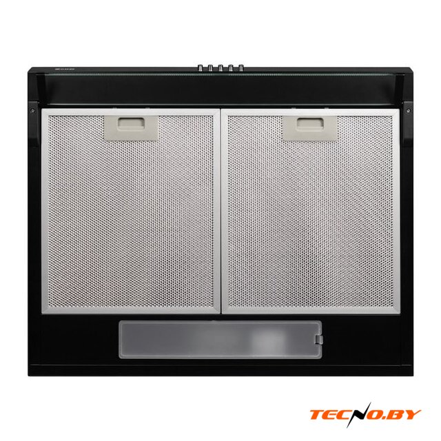конструкция телескопическая, монтаж для встраивания, ширина 59.5 см, управление механическое/кнопочное, производительность мотора 750 м³/ч, цвет черный