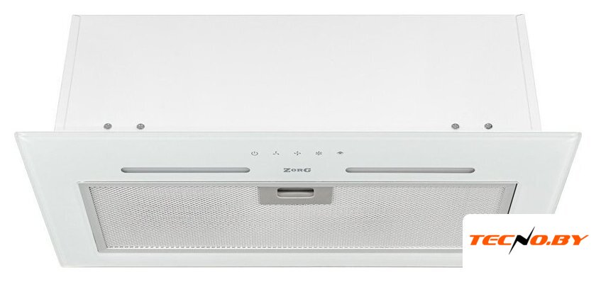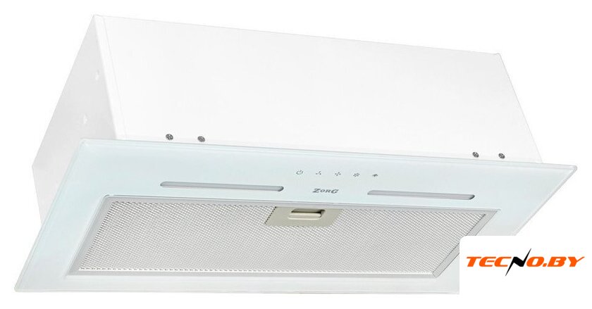 конструкция скрытая, монтаж для встраивания, ширина 59.8 см, управление механическое/поворотный переключатель, производительность мотора 850 м³/ч, цвет белый