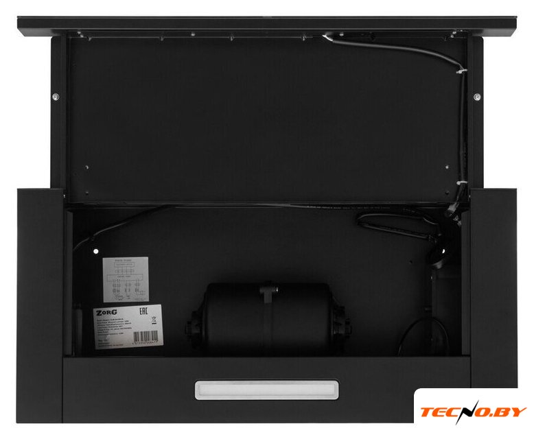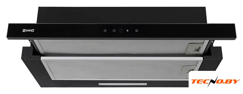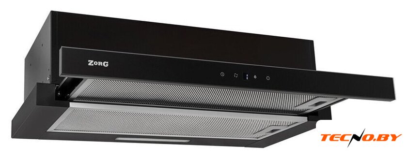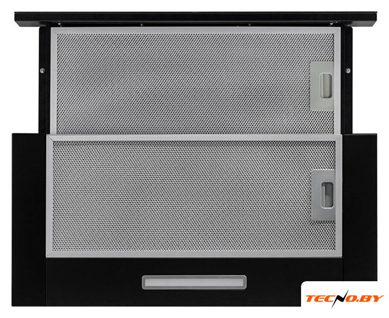 конструкция скрытая, монтаж для встраивания, ширина 60 см, управление механическое/кнопочное, производительность вытяжки 650 м³/ч, цвет черный