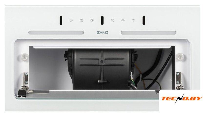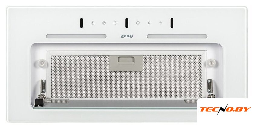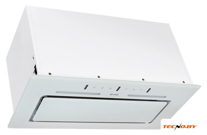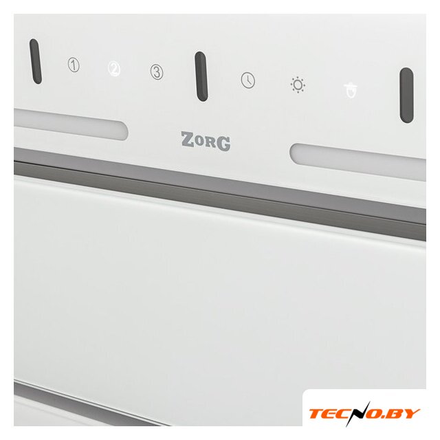 конструкция наклонная, монтаж настенный, ширина 59.5 см, управление сенсорное, производительность вытяжки 600 м³/ч, цвет белый