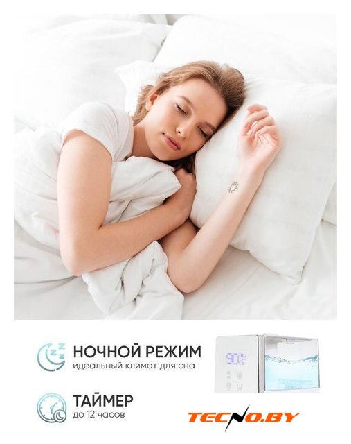 ультразвуковой, производительность 300 мл/ч, резервуар 3.5 л, ароматизация, шум 0 дБ, цвет белый/зеленый
