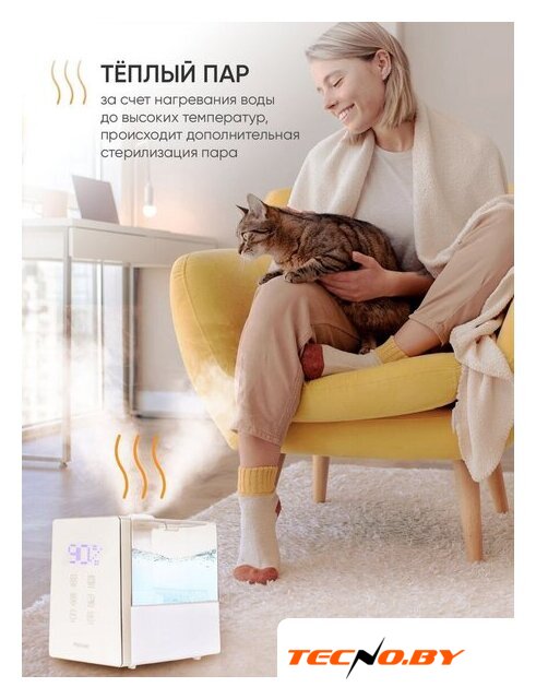 ультразвуковой, помещение до 20 м², производительность 280 мл/ч, резервуар 3.5 л, гигростат, шум 38 дБ, цвет белый/прозрачный/салатовый