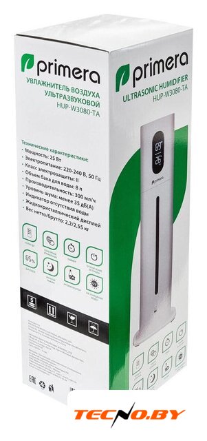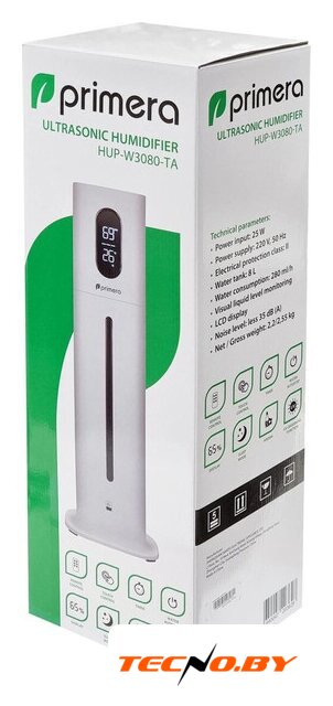 ультразвуковой, помещение до 30 м², производительность 300 мл/ч, резервуар 8 л, ароматизация, шум 0 дБ, цвет белый