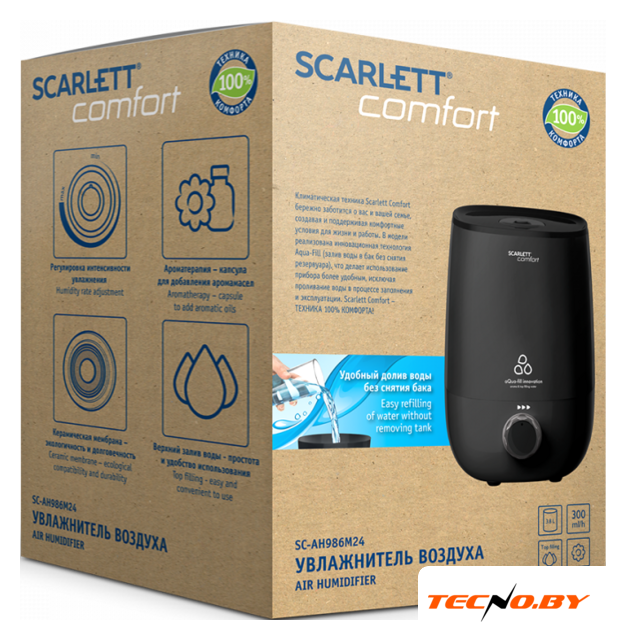 ультразвуковой, производительность 300 мл/ч, резервуар 4 л, гигростат, цвет черный