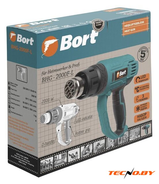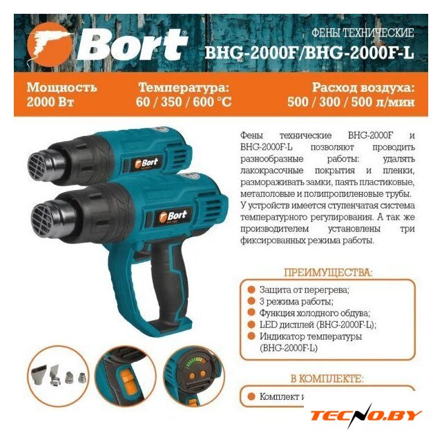 2000 Вт, 50–600 °С, 250–500 л/мин, 0.82 кг