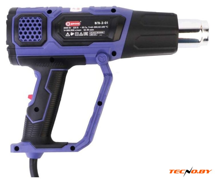 2000 Вт, 25–600 °С, 150–500 л/мин, режим холодного обдува, 0.7 кг