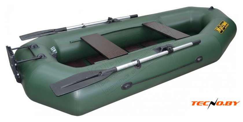 моторно-гребная лодка, дно: реечное (слань), ПВХ 750 г/кв.м, навесной транец, грузоподъёмность: 220 кг, 2 места, 2.8x1.23 м, 17.6 кг