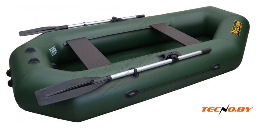 моторно-гребная лодка, дно: реечное (слань), ПВХ 750 г/кв.м, навесной транец, грузоподъёмность: 220 кг, 2 места, 2.8x1.23 м, 17.6 кг