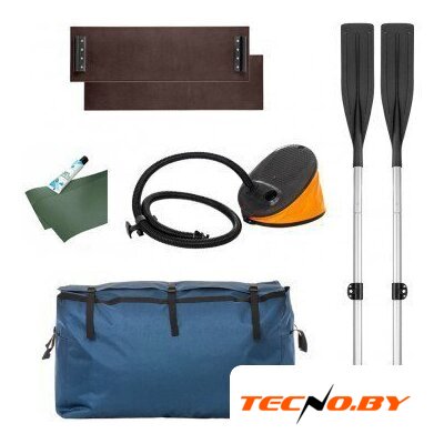 | Комплектация | весло (2 шт.), насос (ножной 5 л), ремкомплект, сумка упаковочная (81×53×32 см), руководство по эксплуатации (паспорт), банка (сиденье) (2 шт.) |