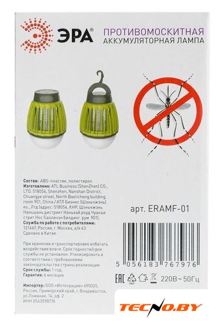 | Тип уничтожителя насекомых | с высоковольтной сеткой |
