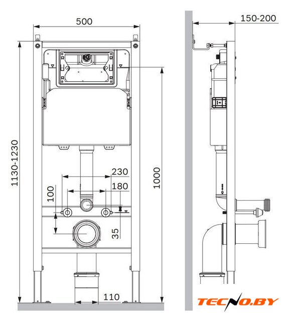 Отверстия под унитаз | 180 мм, 230 мм |