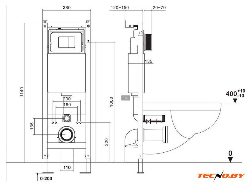 | Отверстия под унитаз | 180 мм, 230 мм |