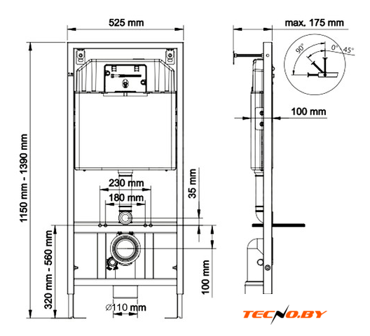 крепление на капитальную стену/на пол, макс. нагрузка 500 кг, двухрежимный слив, механическое управление, бачок в комплекте