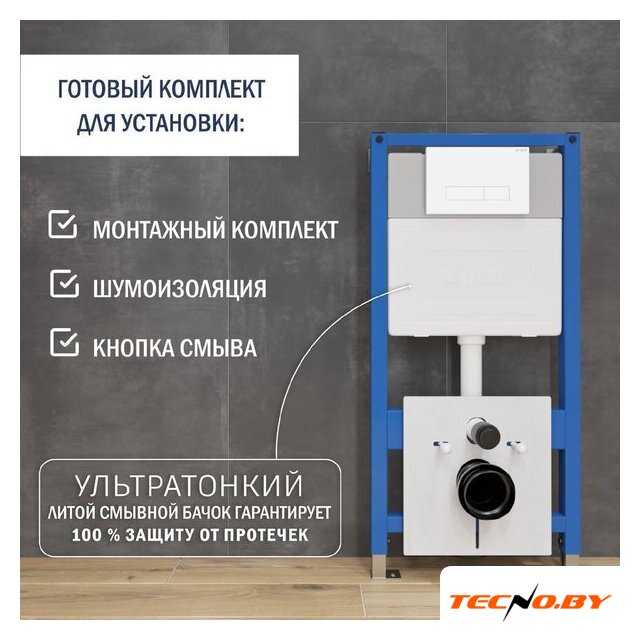 крепление на капитальную стену/на пол, макс. нагрузка 500 кг, двухрежимный слив, механическое управление, бачок в комплекте