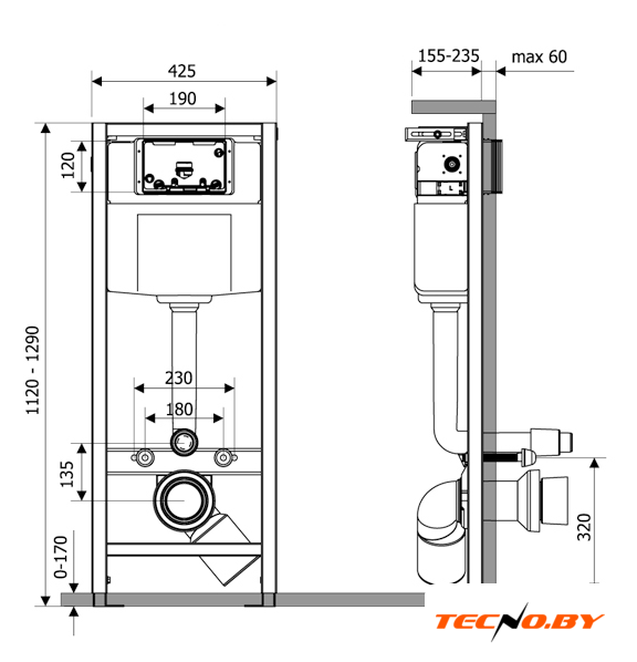 крепление на капитальную стену/на пол/на некапитальную стену, макс. нагрузка 400 кг, механическое управление, бачок в комплекте, 50x109-129x15-32.5 см