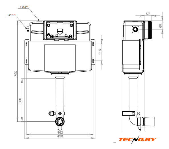крепление на капитальную стену/на пол, макс. нагрузка 500 кг, двухрежимный слив, механическое управление, бачок в комплекте