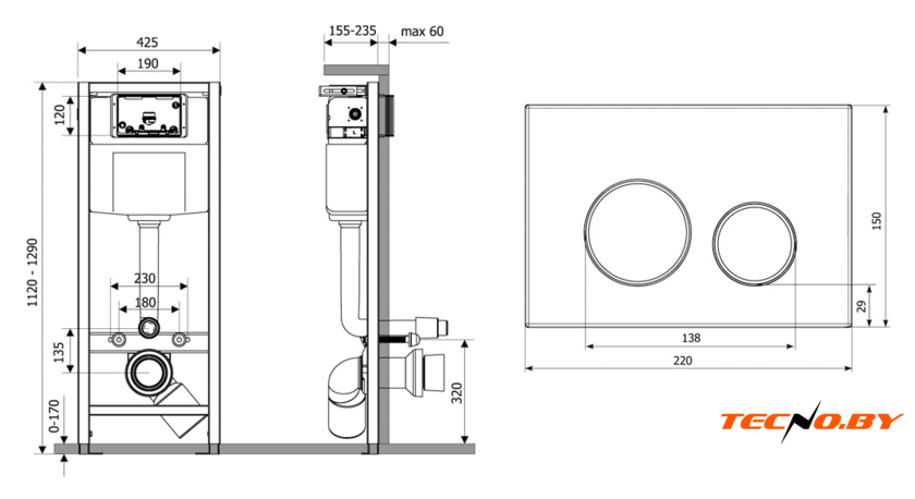 крепление на капитальную стену/на пол/на некапитальную стену, макс. нагрузка 400 кг, однорежимный/двухрежимный/трехрежимный/прерываемый слив, механическое управление, бачок в комплекте, 42.5x129x45 см