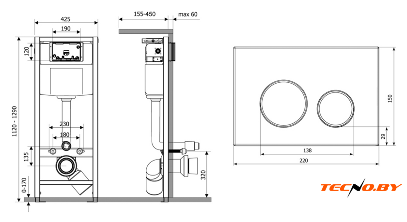 крепление на капитальную стену/на пол/на некапитальную стену, макс. нагрузка 400 кг, однорежимный/двухрежимный/трехрежимный/прерываемый слив, механическое управление, бачок в комплекте, 42.5x129x45 см