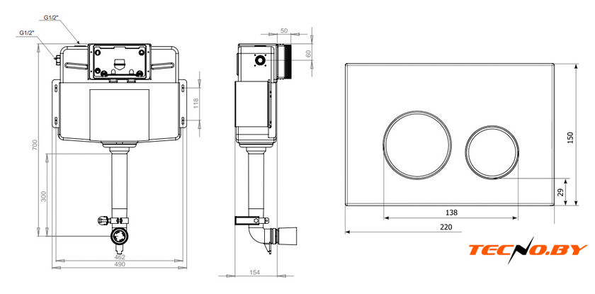крепление на капитальную стену/на пол, макс. нагрузка 500 кг, двухрежимный слив, механическое управление, бачок в комплекте, 52.5x111.9x10.5-15 см