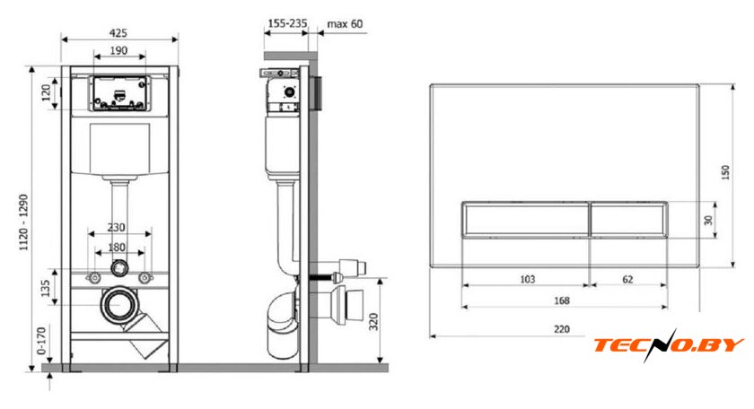 крепление на капитальную стену/на пол/на некапитальную стену, макс. нагрузка 400 кг, двухрежимный слив, механическое управление, бачок в комплекте, 42.5x129x45 см