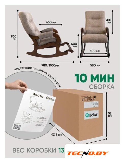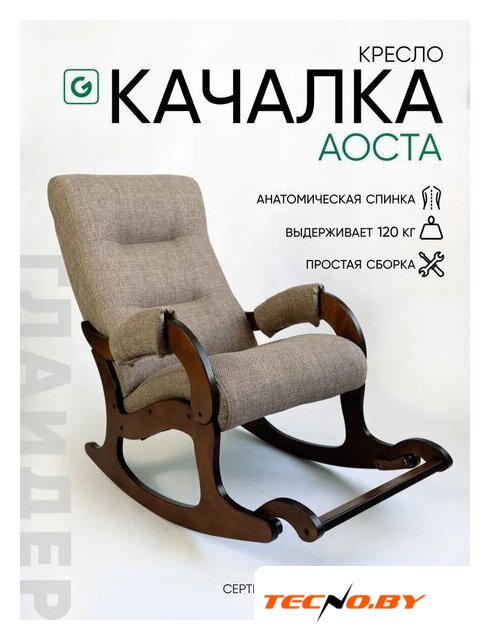 кресло-качалка, сиденье: ткань, каркас: дерево, съемный чехол, коричневый