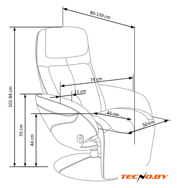 С размерами всего 74 см в длину, 80 см в ширину и 101 см в высоту, кресло идеально впишется даже в небольшие помещения. Высота сидения составляет комфортные 44 см, что обеспечивает удобную посадку для пользователя любого роста. Его небольшие габариты позволяют легко разместить его в любой части комнаты, независимо от планировки.